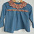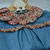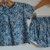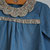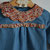 Il est en coton denim bleu, le col est formé de pétales en Liberty Poppy Forest automne, un