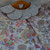 Elle est en voile de coton indien block Print fond blanc fleuri rose et vert. Les manches sont longues, un pli creux devant donne plus d'aisance, elle se ferme par quatre boutons nacre au dos.
