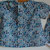 Elle est en coton Liberty D'Anjo bleu (ton gris/bleu/beige, fond blanc). Manches
