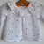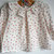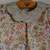 Il est en coton Liberty Mabelle. Manches longues, il se ferme par quatre petits boutons nacre au dos. Le col est formé de pétales en Liberty Capel gris clair.