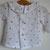 Il est en coton blanc fleuri bleu. Manches longues, il se ferme par trois petits
