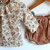 Il est en double gaze de coton écrue fleurie automne. Manches longues, il se ferme par
