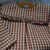 Il est en coton Seersucker vichy écru et cognac, le col est carré bordé d'un petit volant en